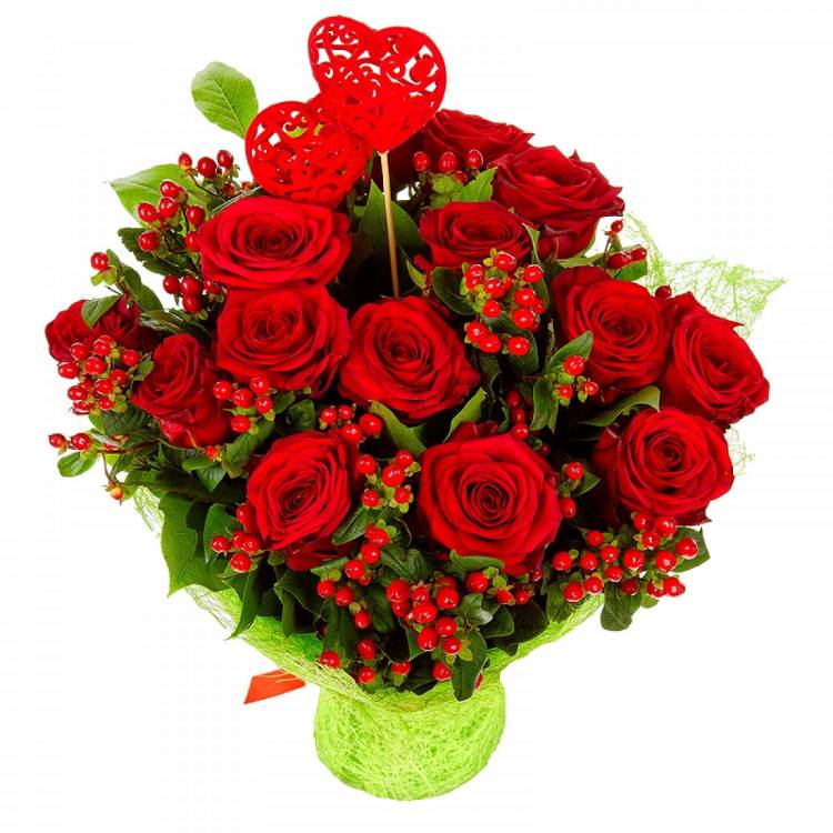 Всеми любимые красные розы олицетворяют страсть, пьянящую любовь и безудержное желание. В тандеме со спелыми ягодами гиперикума они выглядят просто восхитительно и бесконечно радуют глаз, поэтому этот букет пользуется особой популярностью. Выбирая его для своей женщины, вы сможете в полной мере выразить своё уважение к избраннице и восхищение её красотой. Он также символизирует сильную эмоциональную привязанность и необузданную страсть. Однако главная прелесть этой композиции не только в роскошном внешнем виде, но и в чарующем аромате благородных алых роз.